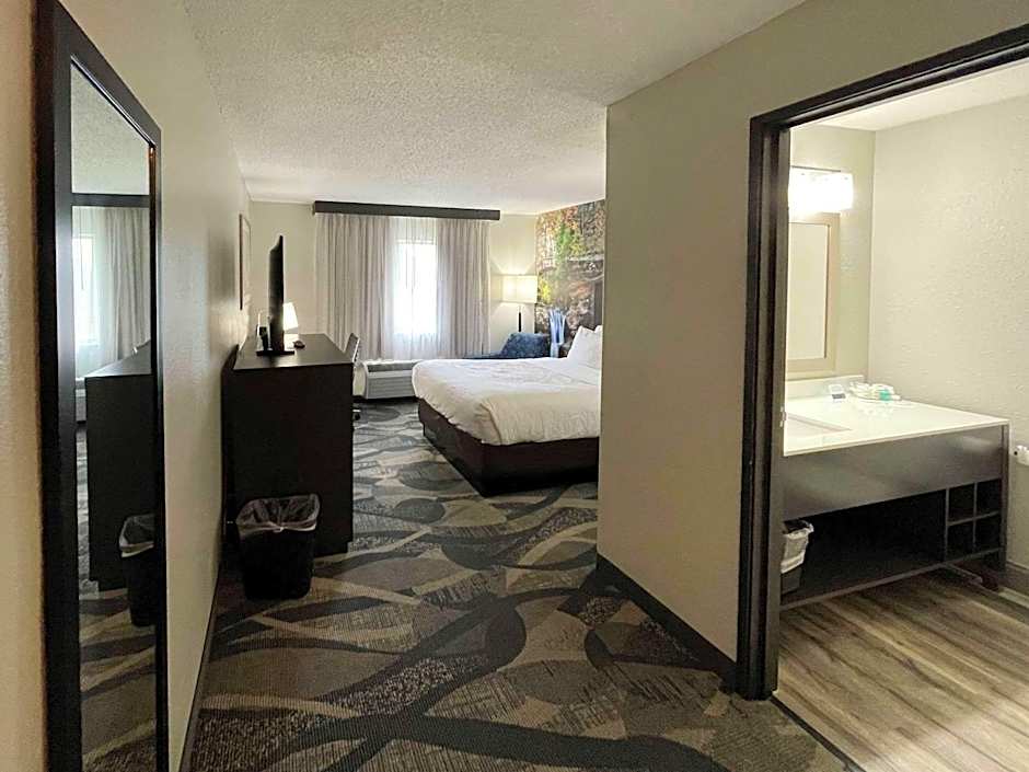 The suite offers air conditioning and a tea and coffee maker.